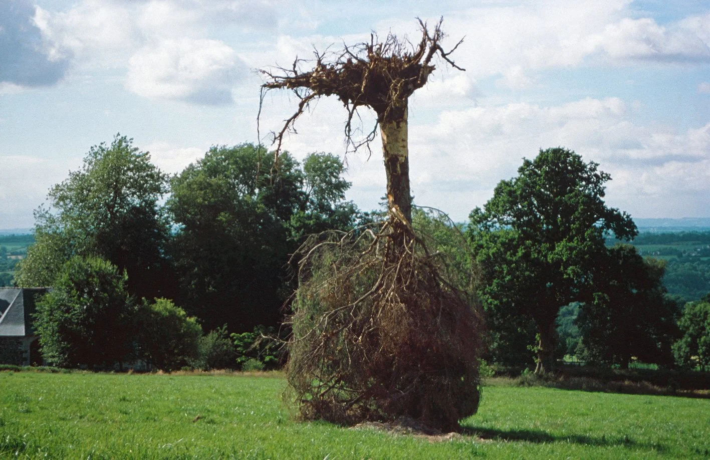Site-specific installation, upside-down standing tree, 15 m (590.5 inches), Château de Trévarez, FR, 2000